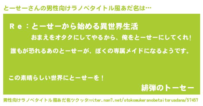 | 意味不明あだ名 | 『永久保存とーせー』『自称とーせー』 |