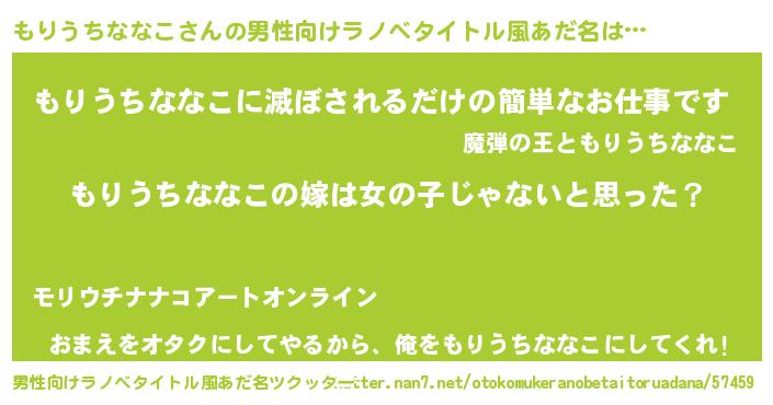 女子向けラノベタイトル風あだ名 | 『もりうちななこの卵を拾いまして』 |