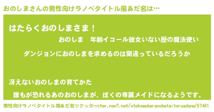 | 女子向けラノベタイトル風あだ名 | 『おのしまの卵を拾いまして』 |