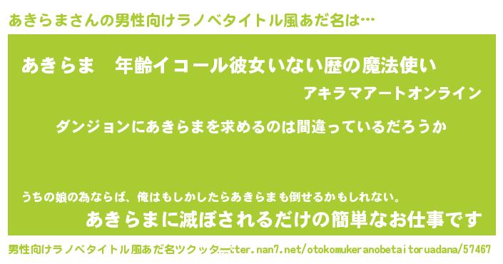 | ヒーロー風カッコイイあだ名 | 『銀牙騎士アキ』『スーパーアキラマ』 |