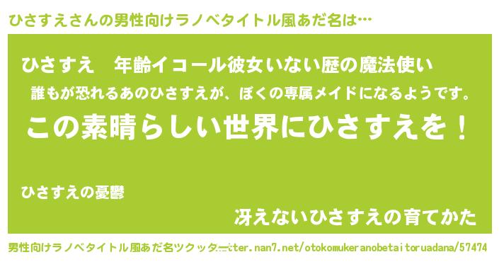 | 胡散臭い通販商品みたいなあだ名 | 『あなたにだけ特別に提供する限定10本のレアな日本酒…その名も「ひさすえ」』 |