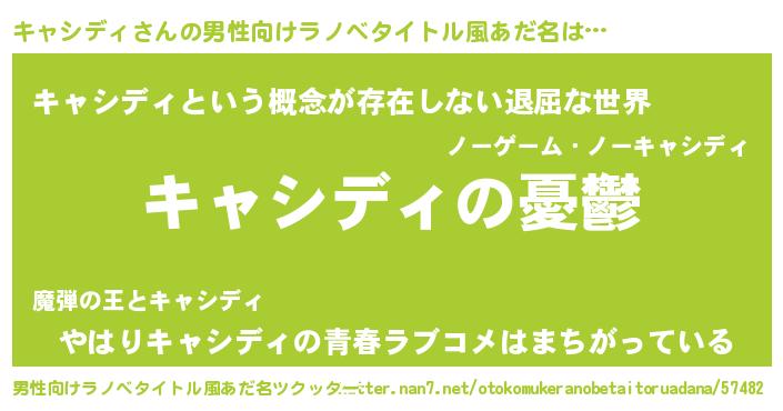 | 女子向けラノベタイトル風あだ名 | 『キャシディ姫と円卓の騎士』 |