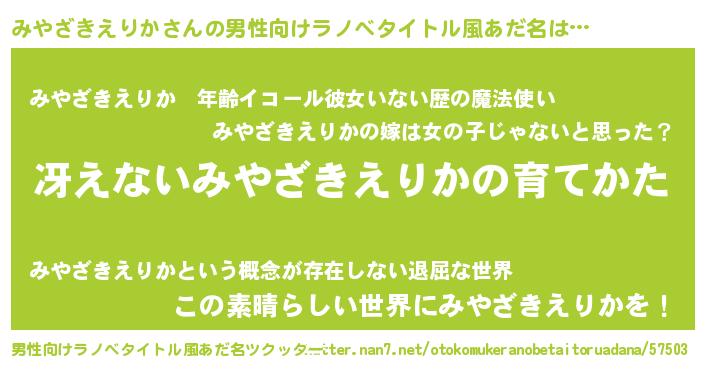 | ヘコむあだ名 | 『みやっ子』『みやざきえりか(遠い目)』 |