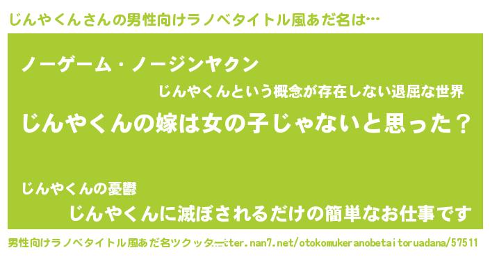 | 女子向けラノベタイトル風あだ名 | 『じんやくん様がみてる』 |