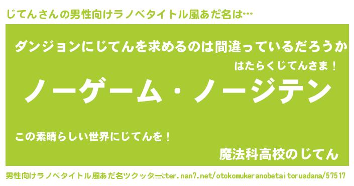 | 女子向けラノベタイトル風あだ名 | 『死神じてんの再婚』 |