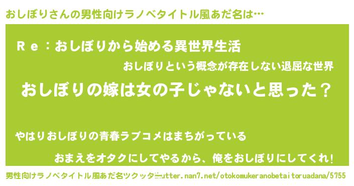 | ヒーロー風カッコイイあだ名 | 『天弓騎士オシ』『超時空戦士オシボリ』 |