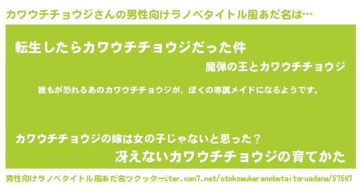 | ヒーロー風カッコイイあだ名 | 『ネオカワウチチョウジ』『仮面カワダー』 |