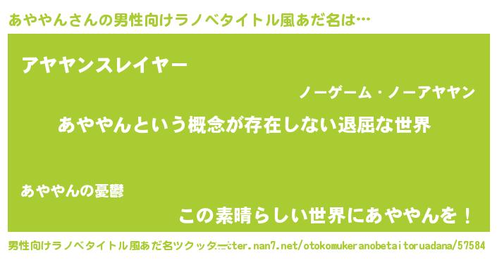 | 胡散臭い通販商品みたいなあだ名 | 『来世でも幸せになれる健康食品…その名も「あややん」』 |
