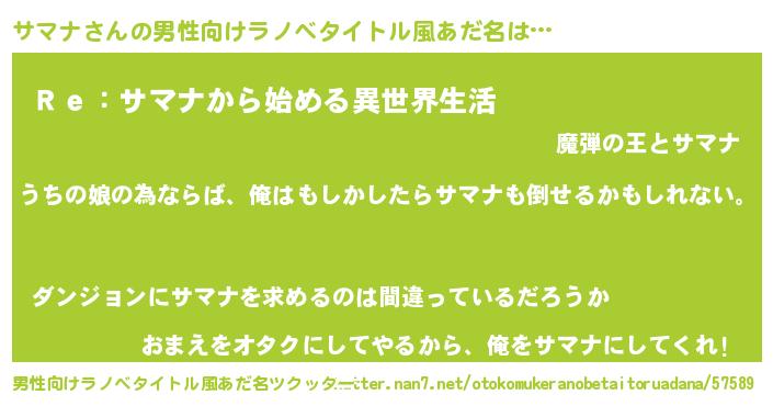 | 女子向けラノベタイトル風あだ名 | 『サマナの婚約者』『闇のサマナ』 |