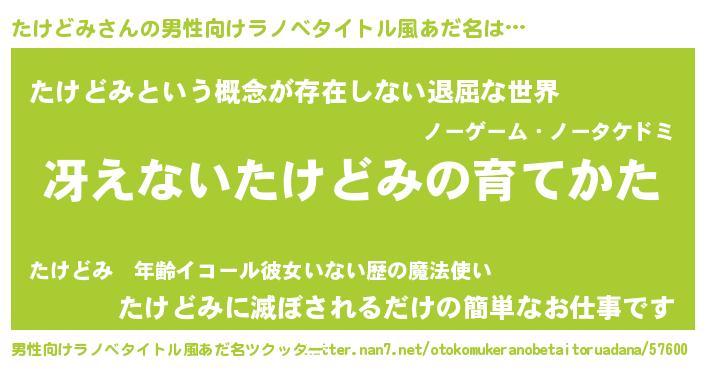 | 市区町村名 | 『たけ田谷区』『たけ覇市』 |