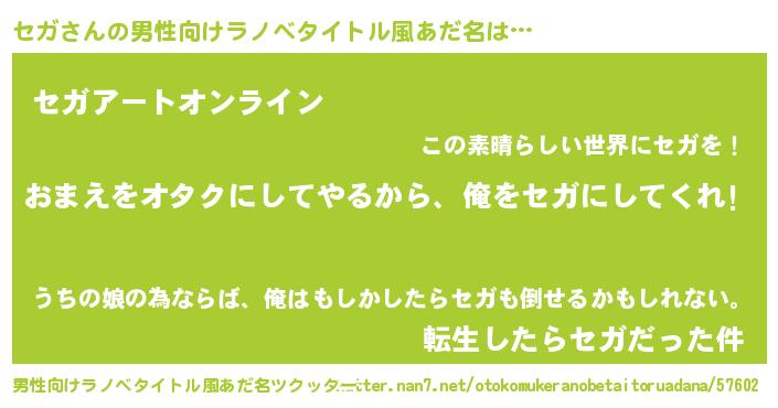 | 女子向けラノベタイトル風あだ名 | 『セガ恋絵巻』『セガ伯爵の花嫁』 |