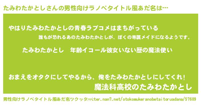 | 胡散臭い通販商品みたいなあだ名 | 『運命の人と巡り会える高級そうな壺…その名も「たみわたかとし」』 |