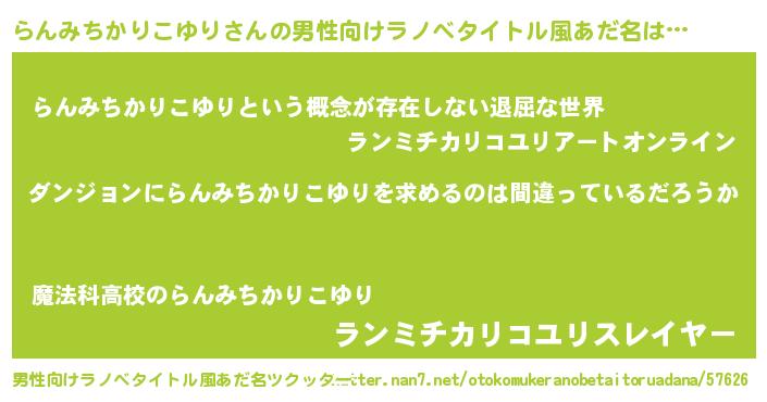 | 女子向けラノベタイトル風あだ名 | 『らんみちかりこゆりの卵を拾いまして』 |