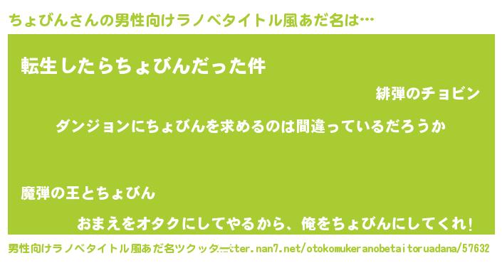 | 女子向けラノベタイトル風あだ名 | 『ちょびんは平凡を望む』 |