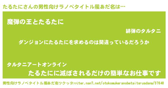 | 女子向けラノベタイトル風あだ名 | 『たるたにの卵を拾いまして』 |