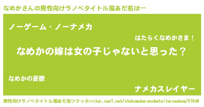 | 女子向けラノベタイトル風あだ名 | 『なめか様がみてる』『なめか恋絵巻』 |