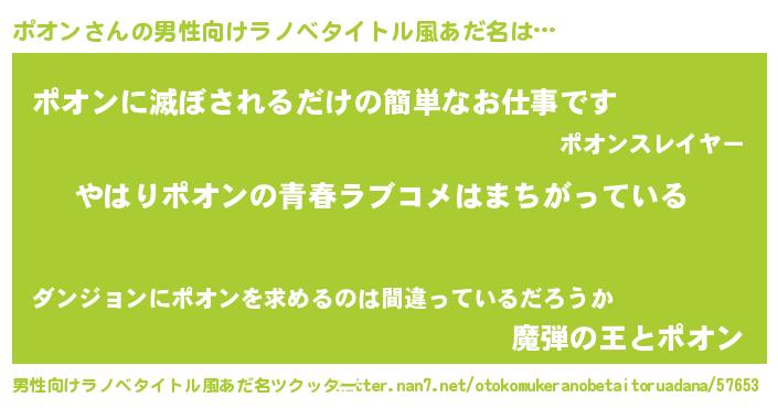 | 女子向けラノベタイトル風あだ名 | 『ポオンの雑貨屋さん』 |