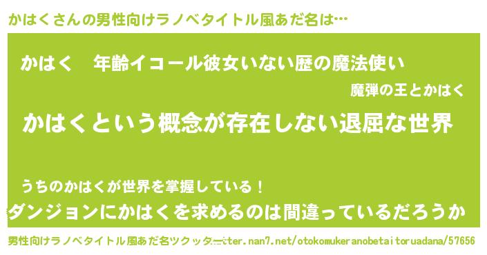 | 胡散臭い通販商品みたいなあだ名 | 『絶対に幸福をもたらす水素水…その名も「かはく」』 |