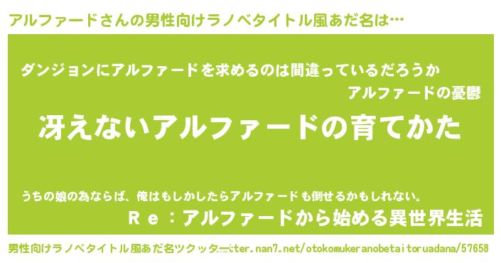 | 胡散臭い通販商品みたいなあだ名 | 『伝統あるサプリメント…その名も「アルファード」』 |