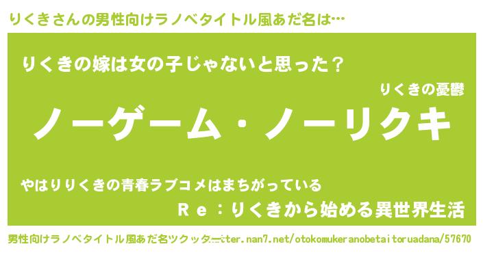りくきさんの男性向けラノベタイトル風あだ名をツクッター!