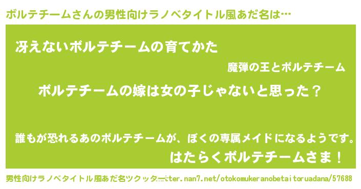 | 女子向けラノベタイトル風あだ名 | 『ボルテチーム様がみてる』 |