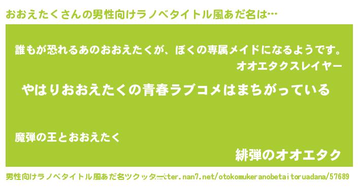 | ファンタジー風あだ名 | 『エターナルオオエタクー』 |