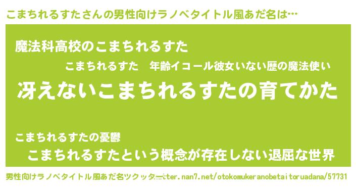| 意味不明あだ名 | 『自称こまちれるすた』 |