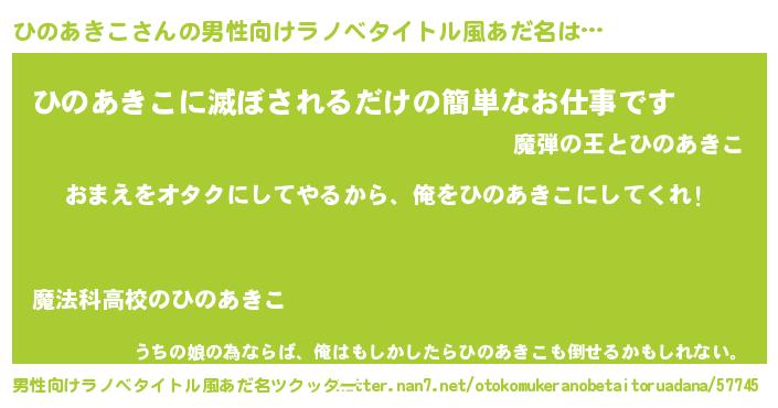 | 女子向けラノベタイトル風あだ名 | 『ひのあきこ夫妻のなれそめ』 |