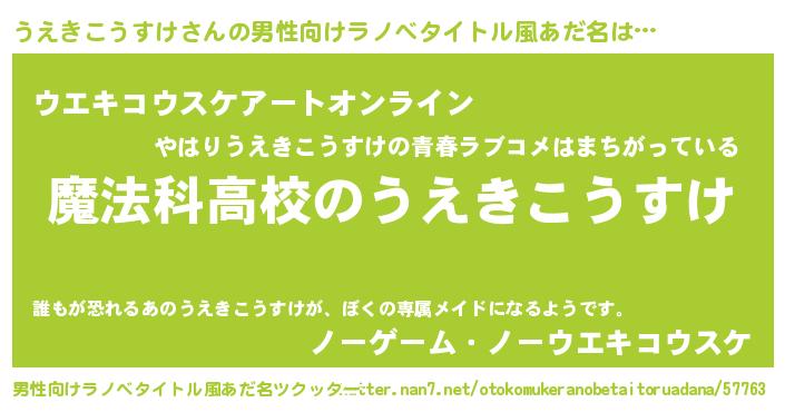 | 女子向けラノベタイトル風あだ名 | 『うえきこうすけなんてお断りですっ。』 |