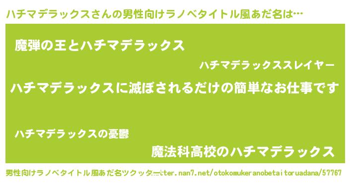 | 胡散臭い通販商品みたいなあだ名 | 『あなたにだけ特別に提供する限定10本のレアな日本酒…その名も「ハチマデラックス」』 |