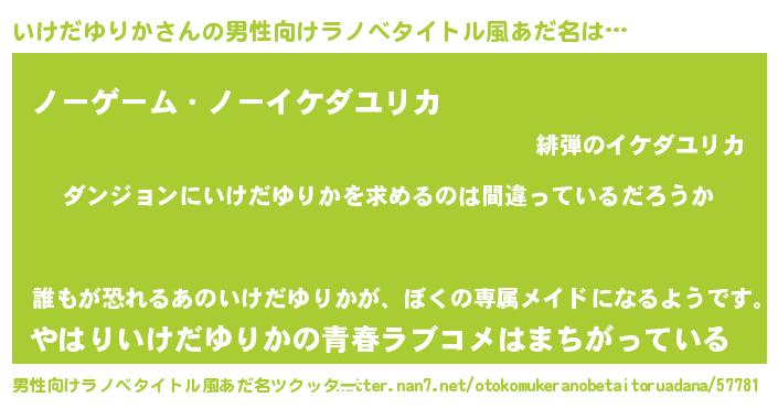 | 女子向けラノベタイトル風あだ名 | 『いけだゆりかは平凡を望む』 |