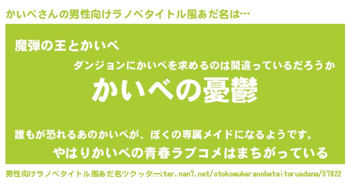 | 女子向けラノベタイトル風あだ名 | 『(仮)かいべのやんごとなき事情』 |