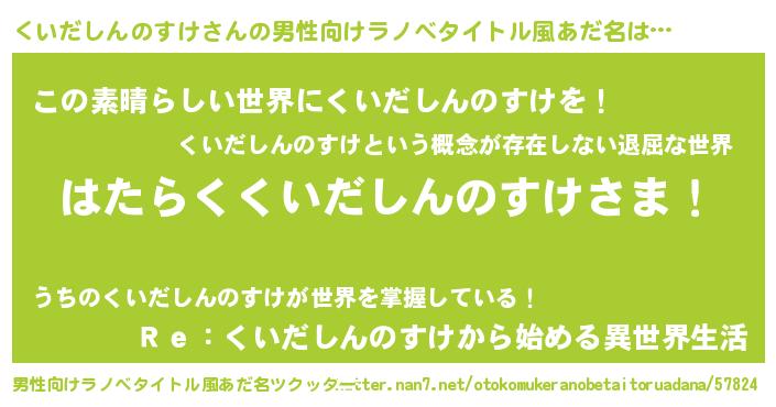 | 意味不明あだ名 | 『住所不定無職くいだしんのすけ(71歳)』 |