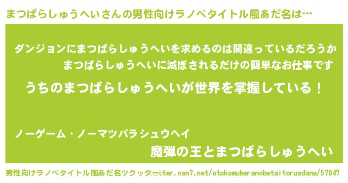 | 胡散臭い通販商品みたいなあだ名 | 『全米が絶賛したペンダント…その名も「まつばらしゅうへい」』 |