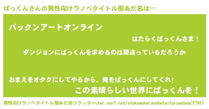 | 女子向けラノベタイトル風あだ名 | 『ばっくんは平凡を望む』 |
