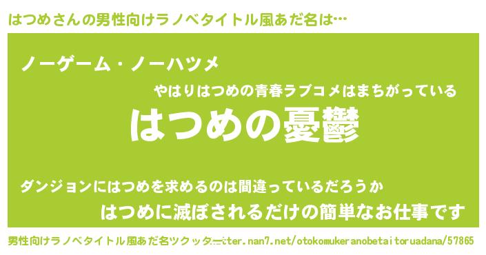 | 胡散臭い通販商品みたいなあだ名 | 『必ず成功する水晶球…その名も「はつめ」』 |