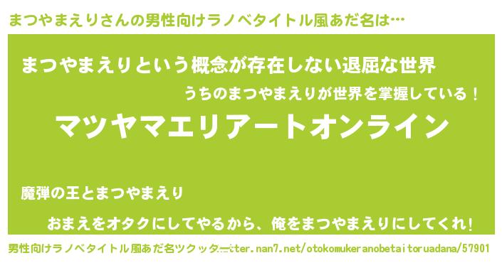 | 胡散臭い通販商品みたいなあだ名 | 『モテモテ間違いなし霊験あらたかなお札…その名も「まつやまえり」』 |