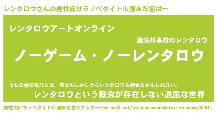 | ヘコむあだ名 | 『レンにゅー』『レンタロウ(遠い目)』 |