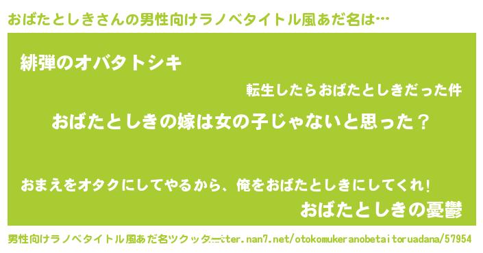 | 女子向けラノベタイトル風あだ名 | 『おばたとしきの卵を拾いまして』 |