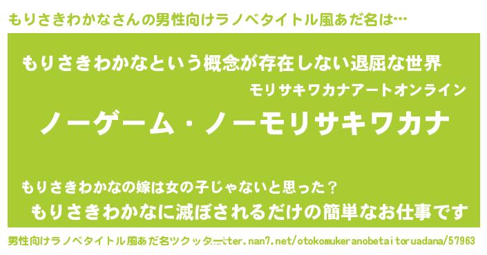 | 女子向けラノベタイトル風あだ名 | 『死神もりさきわかなの再婚』 |