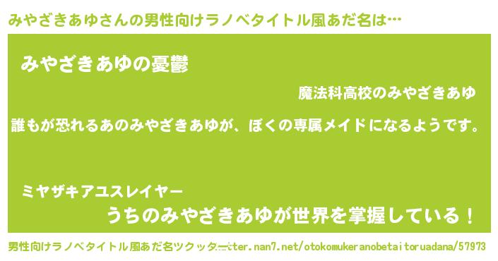 | 意味不明あだ名 | 『永久保存みやざきあゆ』 |