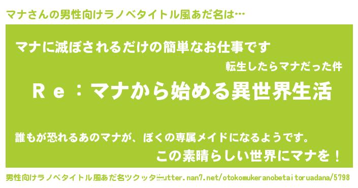 | ヒーロー風カッコイイあだ名 | 『究極戦士マナ』『仮面マナダー』 |