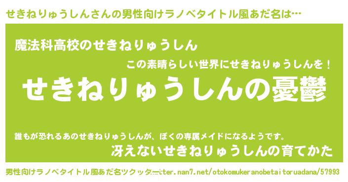 せきねりゅうしんさんの男性向けラノベタイトル風あだ名をツクッター!