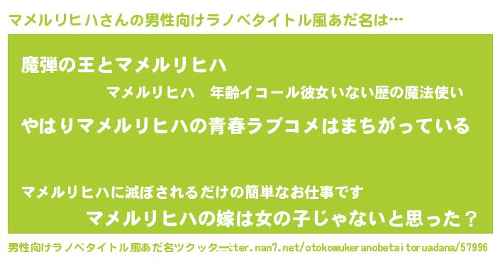 | 女子向けラノベタイトル風あだ名 | 『マメルリヒハの雑貨屋さん』 |