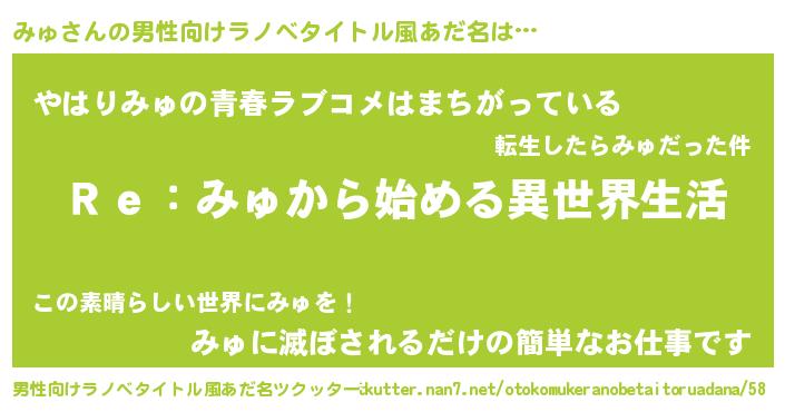 | 女子向けラノベタイトル風あだ名 | 『みゅストレイドッグス』 |