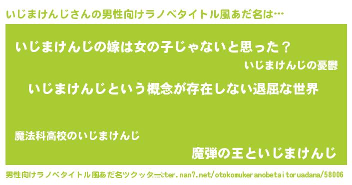 | 女子向けラノベタイトル風あだ名 | 『異世界で失敗しない100のいじまけんじ』 |