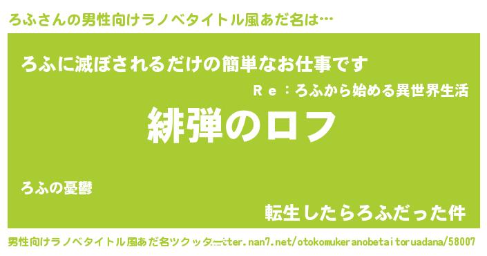 | ヘコむあだ名 | 『ろふふぇ~』『ろふぷりん』 |