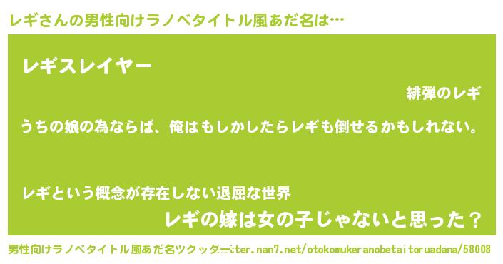 | 女子向けラノベタイトル風あだ名 | 『レギの婚約者』『レギ様がみてる』 |