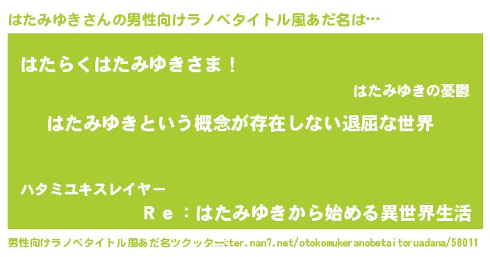 | 女子向けラノベタイトル風あだ名 | 『はたみゆきの契約王妃』 |