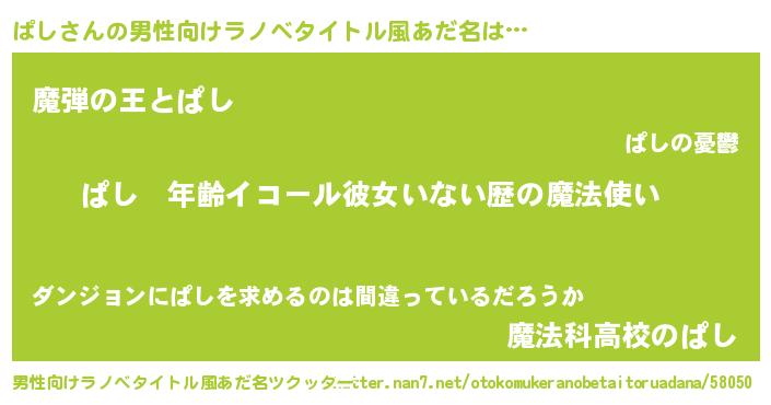 | 胡散臭い通販商品みたいなあだ名 | 『あなたにだけ特別に提供する限定10本のレアな日本酒…その名も「ぱし」』 |